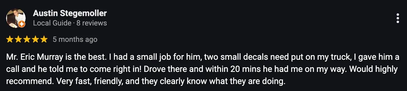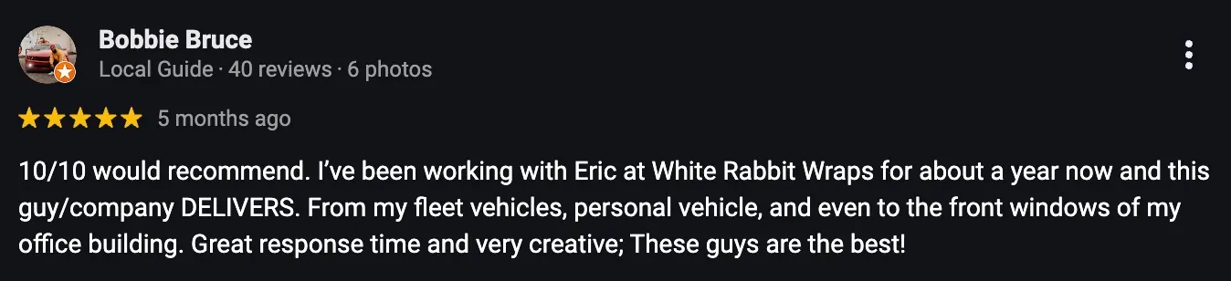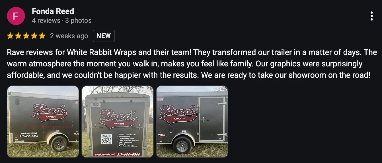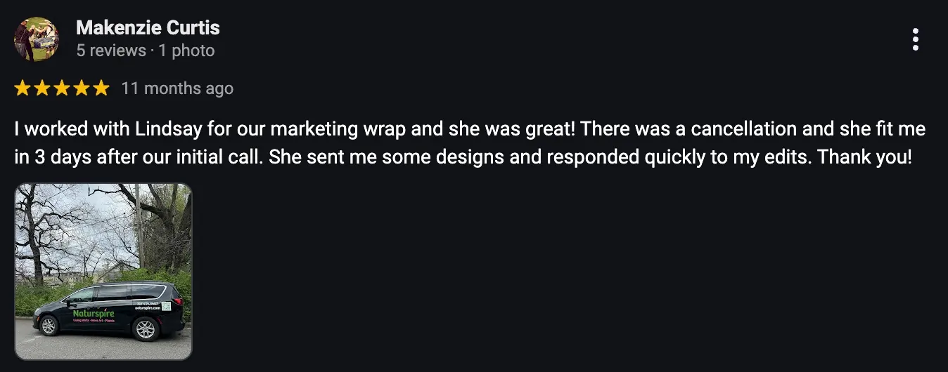 Our own vehicle wrap brought us over thousands of dollars worth of leads this year alone.